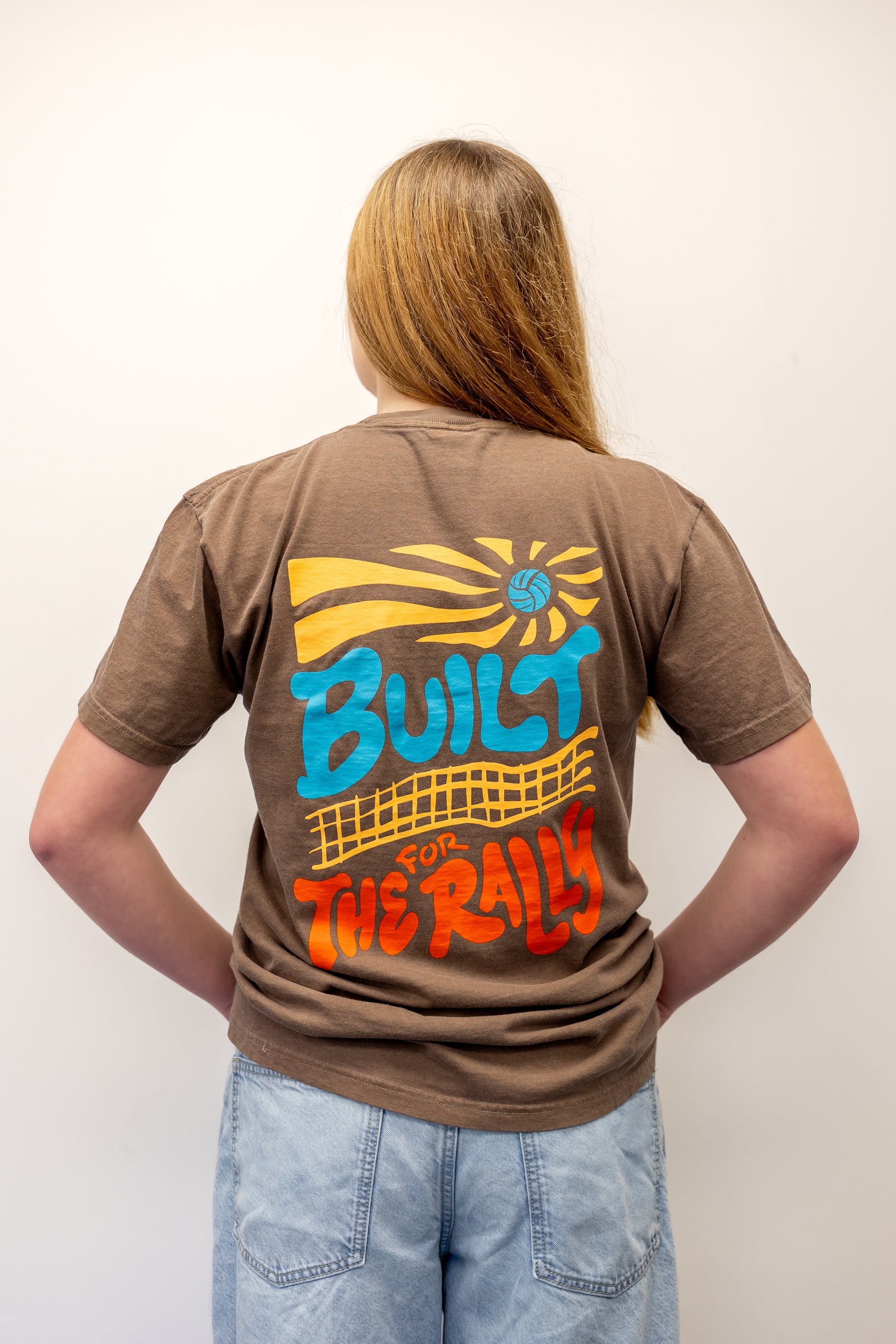 The back pops with bright multicolor “Built for the Rally” artwork. It's bold, fun, and full of motion.